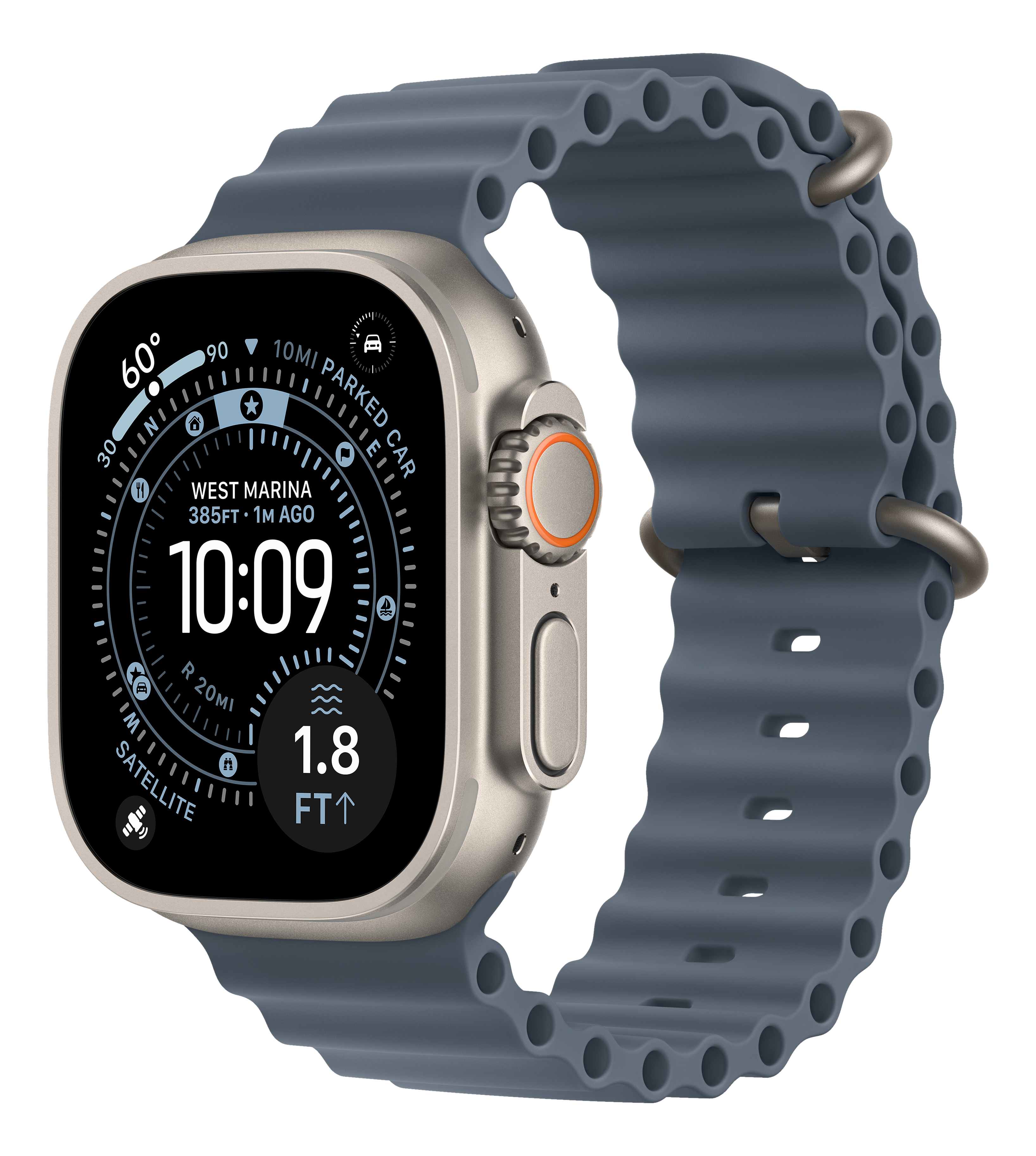 APPLE Watch Ultra 3 GPS + Cellular 49mm Natur Titanium Case mit Anchor Blue Ocean Band