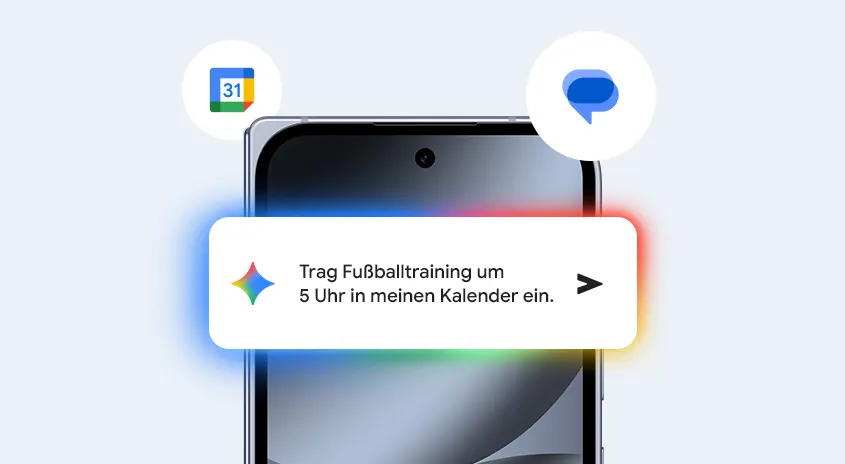 Mit Gemini kannst du in all deinen Google Apps wie Google Maps, Kalender und Gmail nach Informationen suchen und Angelegenheiten für dich erledigen lassen.⁵
