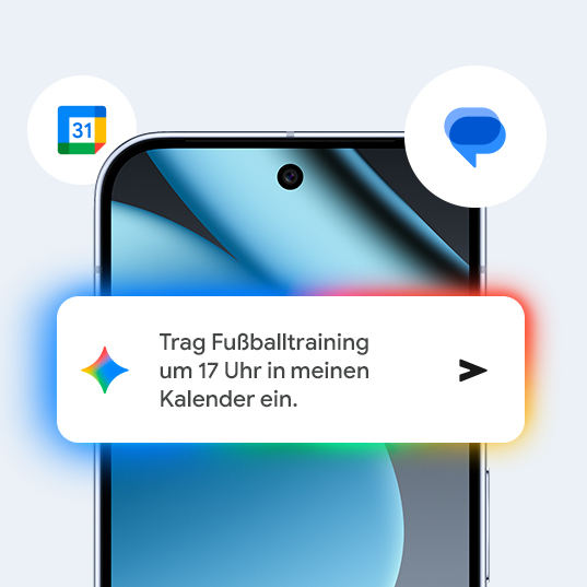 Mit Gemini kannst du in all deinen Google Apps wie Google Maps, Kalender und Gmail nach Informationen suchen und Angelegenheiten für dich erledigen lassen.⁴