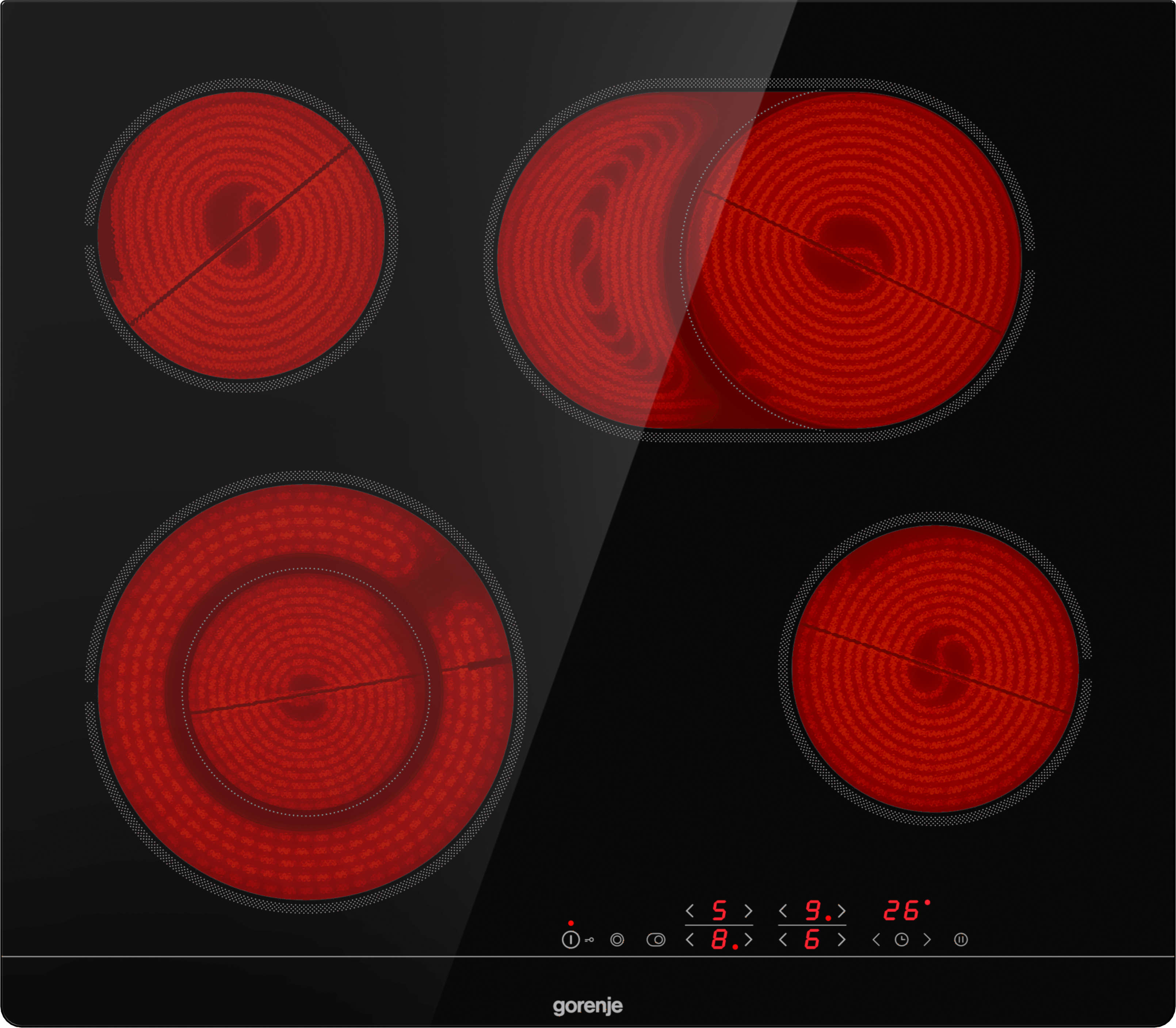 GORENJE ECT643BSC Strahlungsheizungskochfeld (595 mm breit, 4 Kochfelder, Glaskeramik, Autarkes Kochfeld)