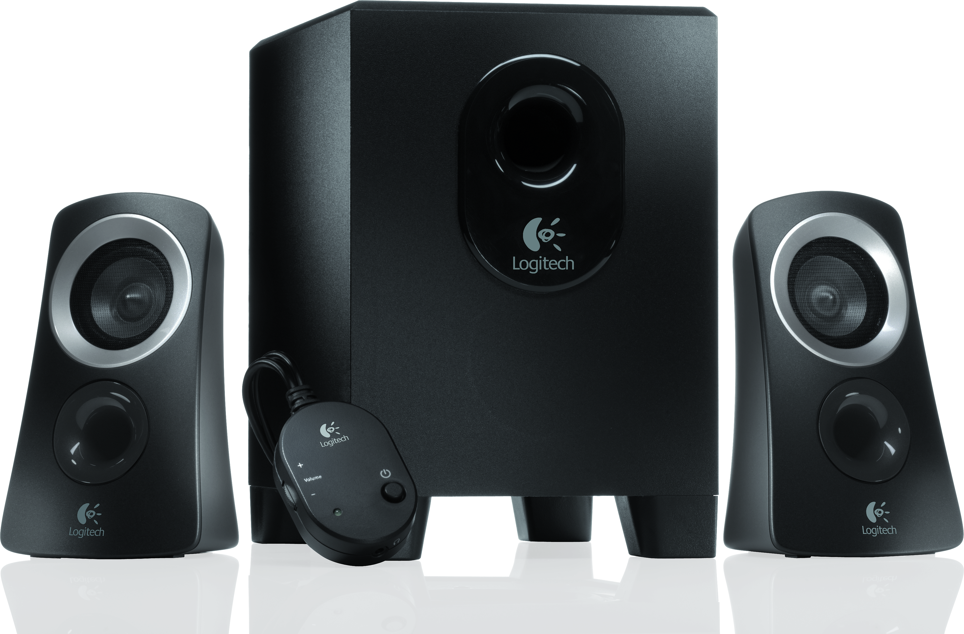 PC-Lautsprecher: Rechter Satellitenlautsprecher, Linker Satellitenlautsprecher, Subwoofer; 3.5-mm-Verbindungskabel, Bedienungsanleitung