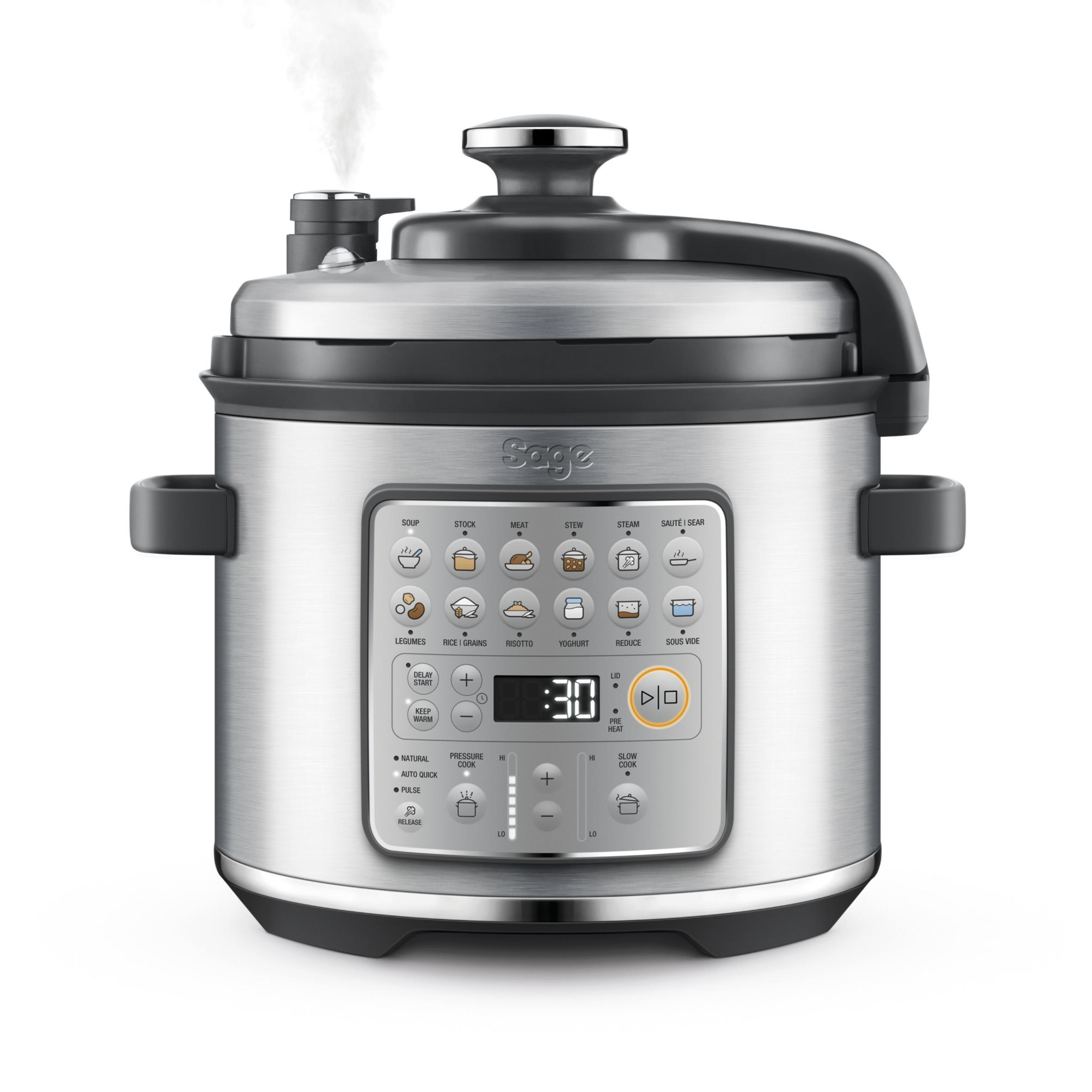 SAGE the Fast Slow GO™ Multifunktionskocher Multi-Cooker Brushed Stainless Steel (Rührschüsselkapazität: 6 l, 1100 Watt)