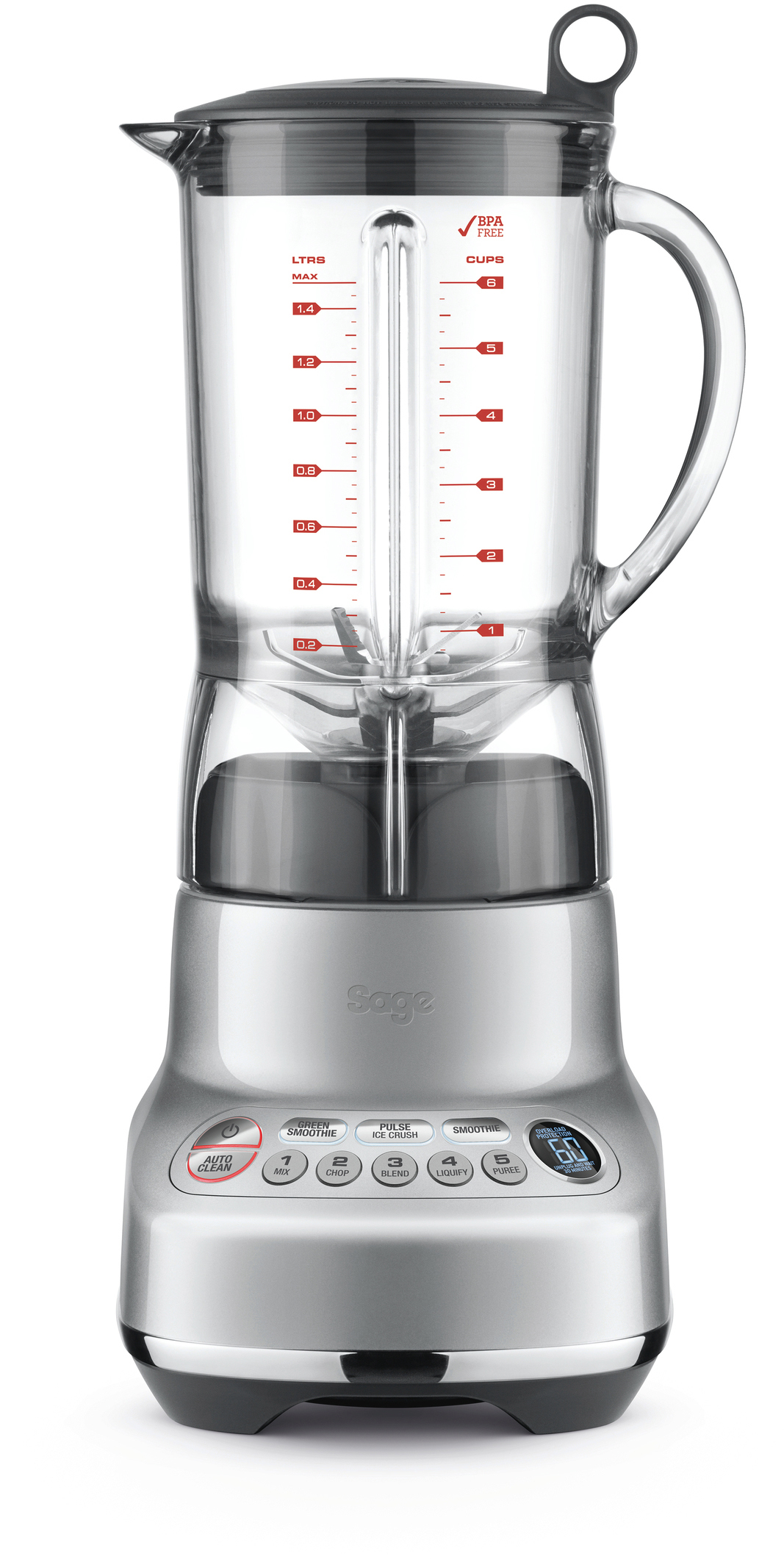 Kinetix® Klingen- und Schalensystem, Elektronische 5-stufige Geschwindigkeitsregelung, Digitaler Timer, Gezahnte Eiscrusher-Klingen in chirurgischer Qualität, Spülmaschinenfeste Krugteile