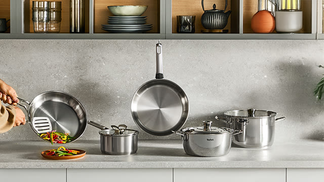 Natürlich verleihen auch die Tefal Pfannen mit Antihaftbeschichtung, Thermosignal, Temperaturanzeige und Titanverstärkung deinen Gerichten eine besondere Note. Die Tefal-Lieblinge sind so konzipiert, dass sie dir die neueste Technologie, Ergonomie, Benutzerfreundlichkeit und Sicherheit bieten.