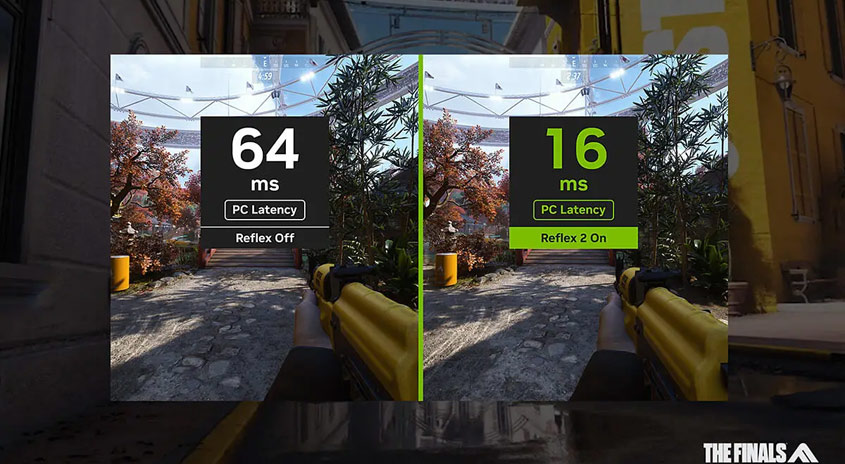 Reflex-Technologien optimieren die Grafik-Pipeline für eine ultimative Reaktionsschnelligkeit. Sie ermöglichen eine schnellere Zielerfassung, kürzere Reaktionszeiten und eine verbesserte Zielgenauigkeit beim Gaming. Reflex 2 minimiert durch Frame Warp die Latenz basierend auf der letzten Mauseingabe im Spiel.