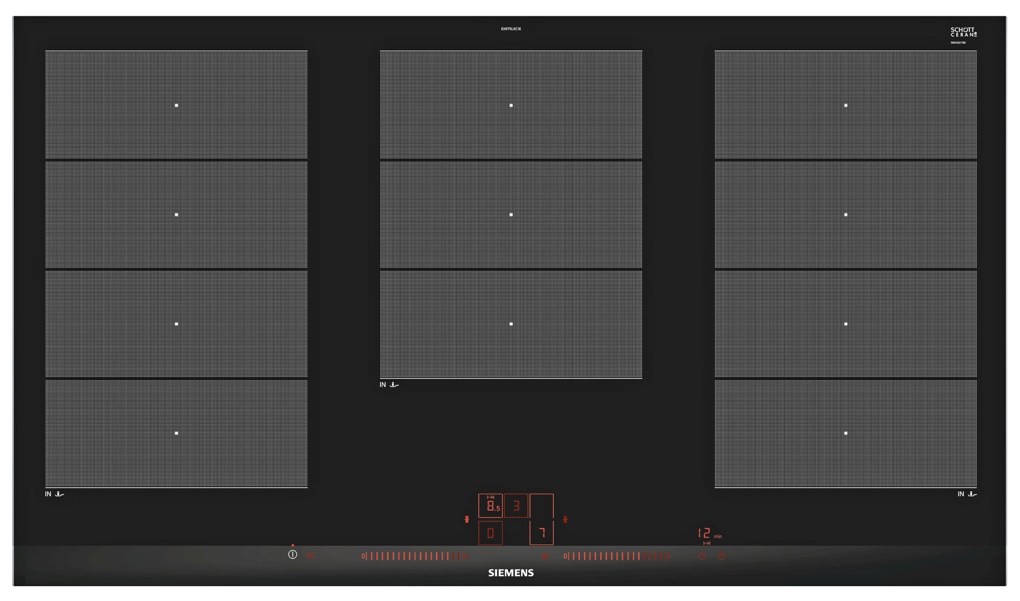 SIEMENS EX 975 LXC1E Induktionskochfeld (912 mm breit, 5 Kochfelder, Glaskeramik, Autarkes Kochfeld)