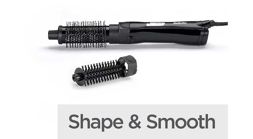 Mit der BaByliss Shape & Smooth Warmluftbürste gelingt das Styling ganz einfach: Glätten und Formen in einem Tool. Der 38-mm-Keramikaufsatzsorgt für Volumen und geschmeidige Föhnergebnisse, während die 20-mm-Bürste mit weichen Borsten ideal ist, um dem Haaransatz mehr Fülle zu verleihen.