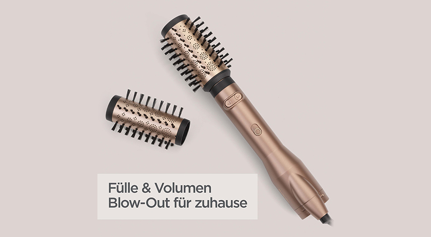 Zwei auswechselbare Bürstenaufsätze (50 mm & 40 mm) bieten Stylingvielfalt für alle Haartypen.