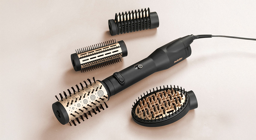 Die BaByliss Big Hair Luxe Warmluftbürste bringt das Salon-Finish direktnach Hause. Mit vier vielseitigen Aufsätzen sorgt sie für geschmeidiges, glänzendes Haar mit natürlichem Schwung.