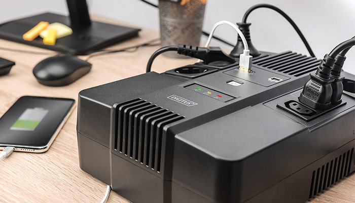 DIGITUS® bietet Line-Interaktive und Online USV-Lösungen, die Büros oder Home Offices zuverlässig vor Datenverlust und Spannungsschäden schützen, da sie Spannungsschwankungen kompensieren. Unsere USV-Anlagen sorgen für eine unterbrechungsfreie Stromversorgung in einer kompakten Größe und mit einer exzellenten Mikroprozessor-Kontrolle.