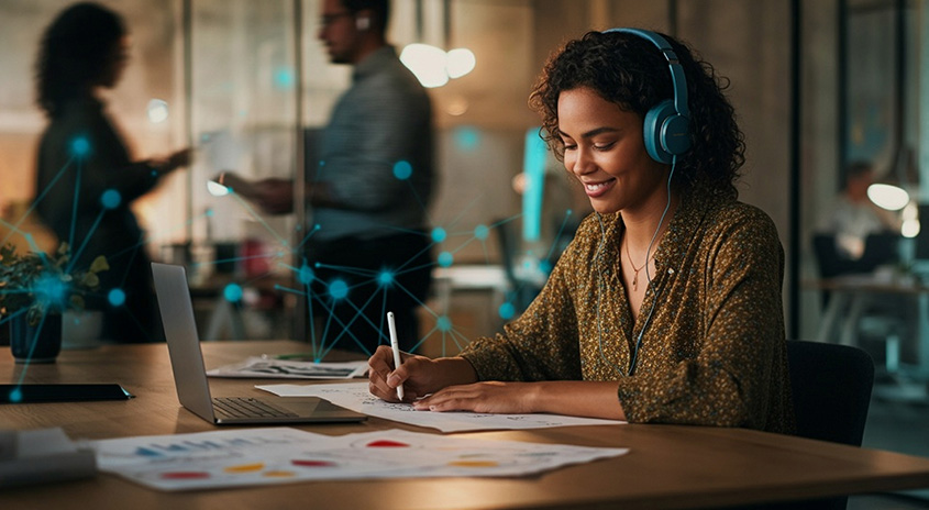 Die Adaptive Sound Control passt sich automatisch deiner Aktivität an. Sie erkennt, wo du bist und was du tust, und passt die Umgebungsgeräuscheinstellungen für ein ideales Hörvergnügen entsprechend an.