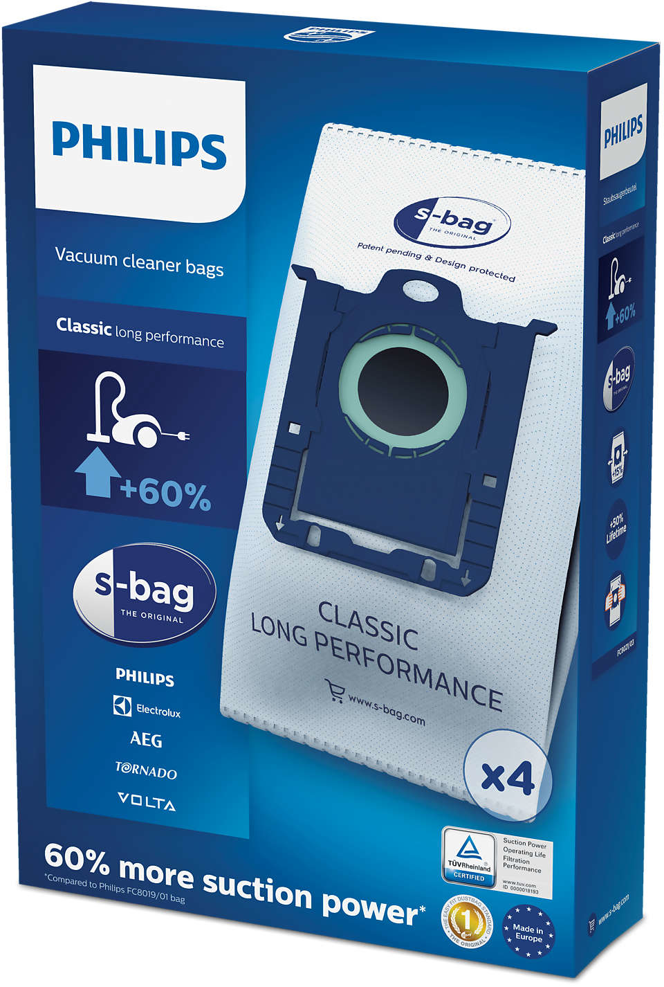 4 synthetische s-bag® Classic Long Performance Staubsaugerbeutel.