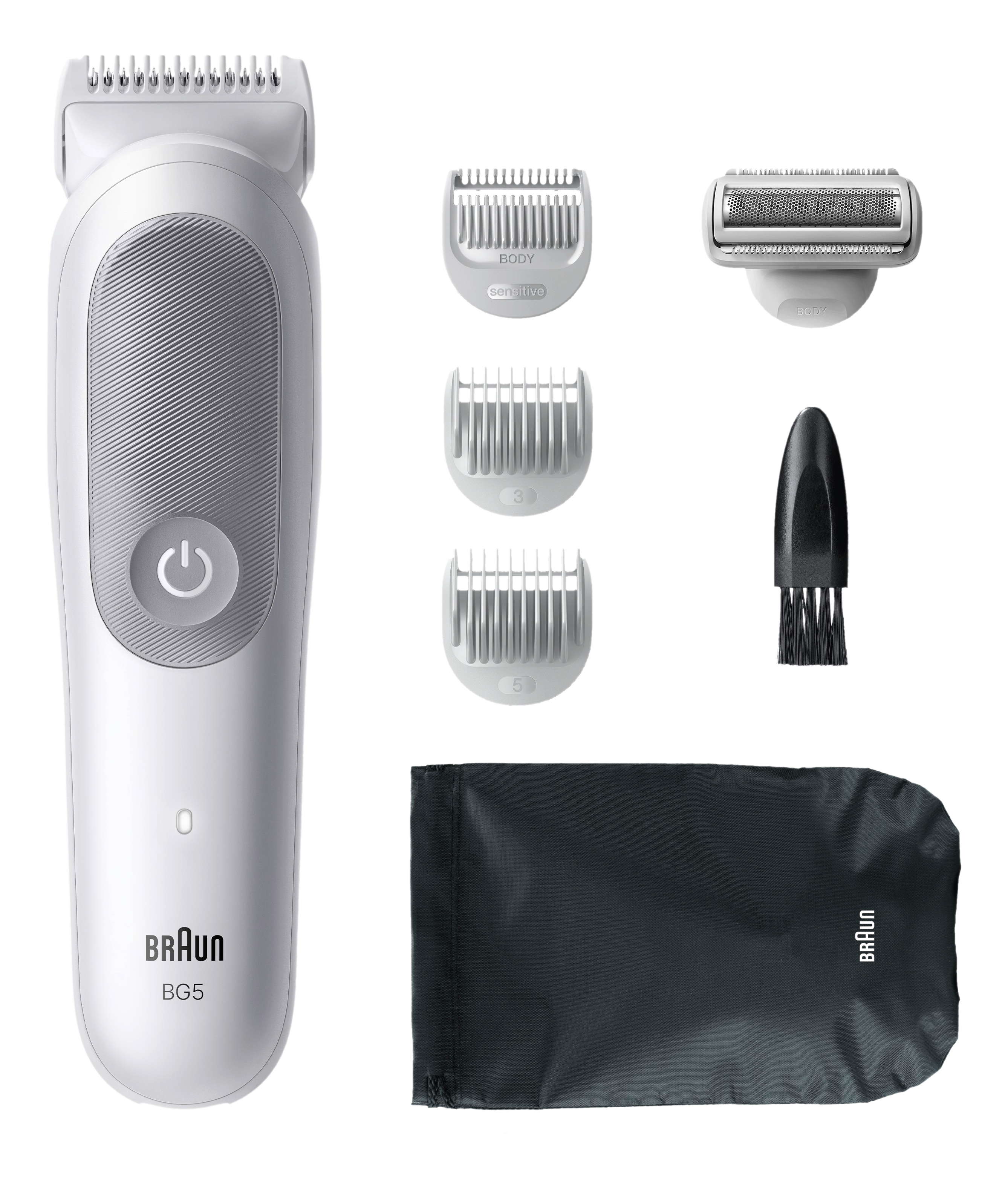 Bodygroomer, 3x Kammaufsätze, Aufsatz für eine glatte Rasur, Etui, Reinigungsbürste