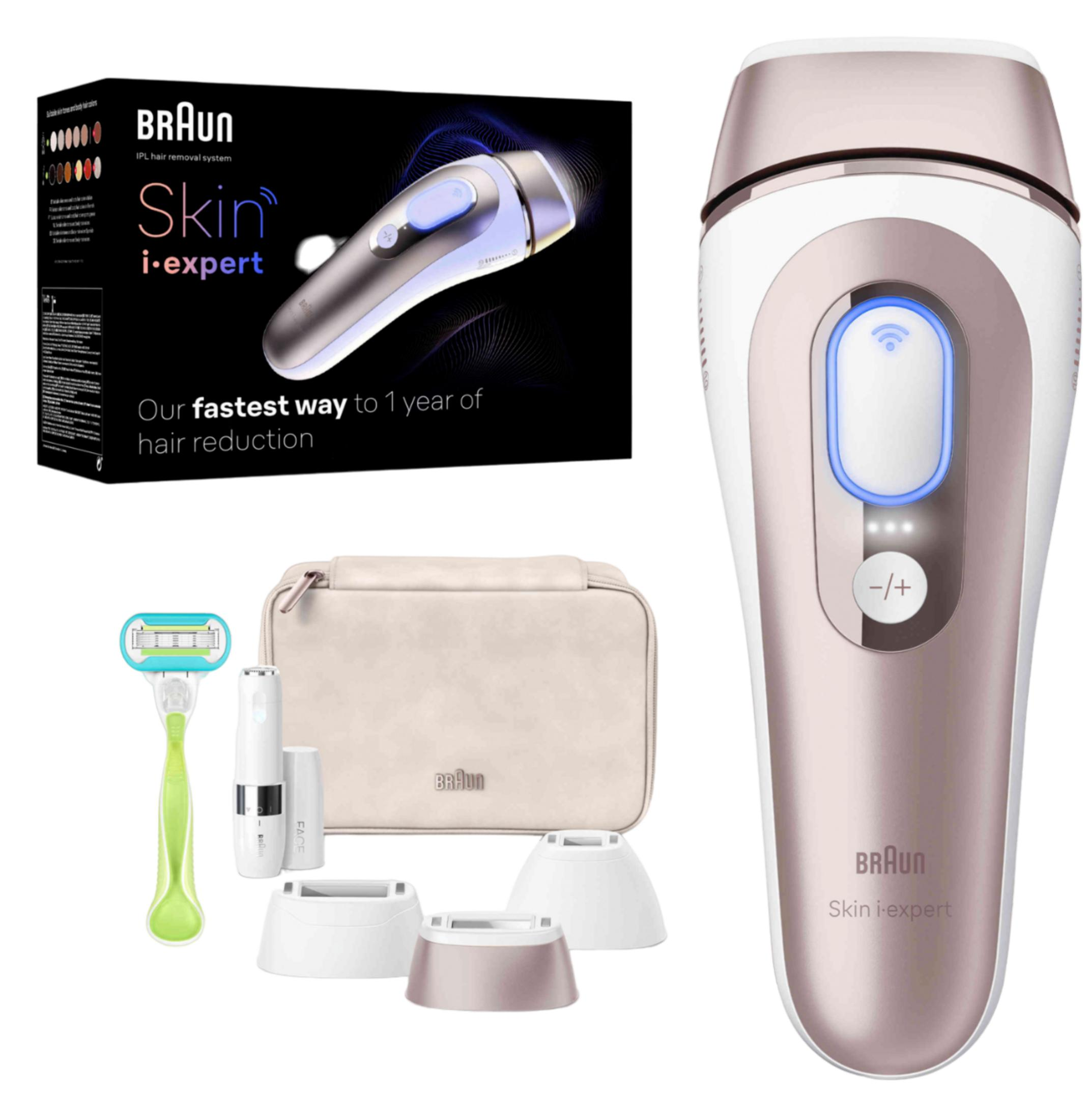 1x Braun IPL mit Standardaufsatz 1x Venus Rasierer 1x Aufbewahrungstasche 1x Präzisionsaufsatz 1x breiter Aufsatz 1x Mini-Rasierer für das Gesicht