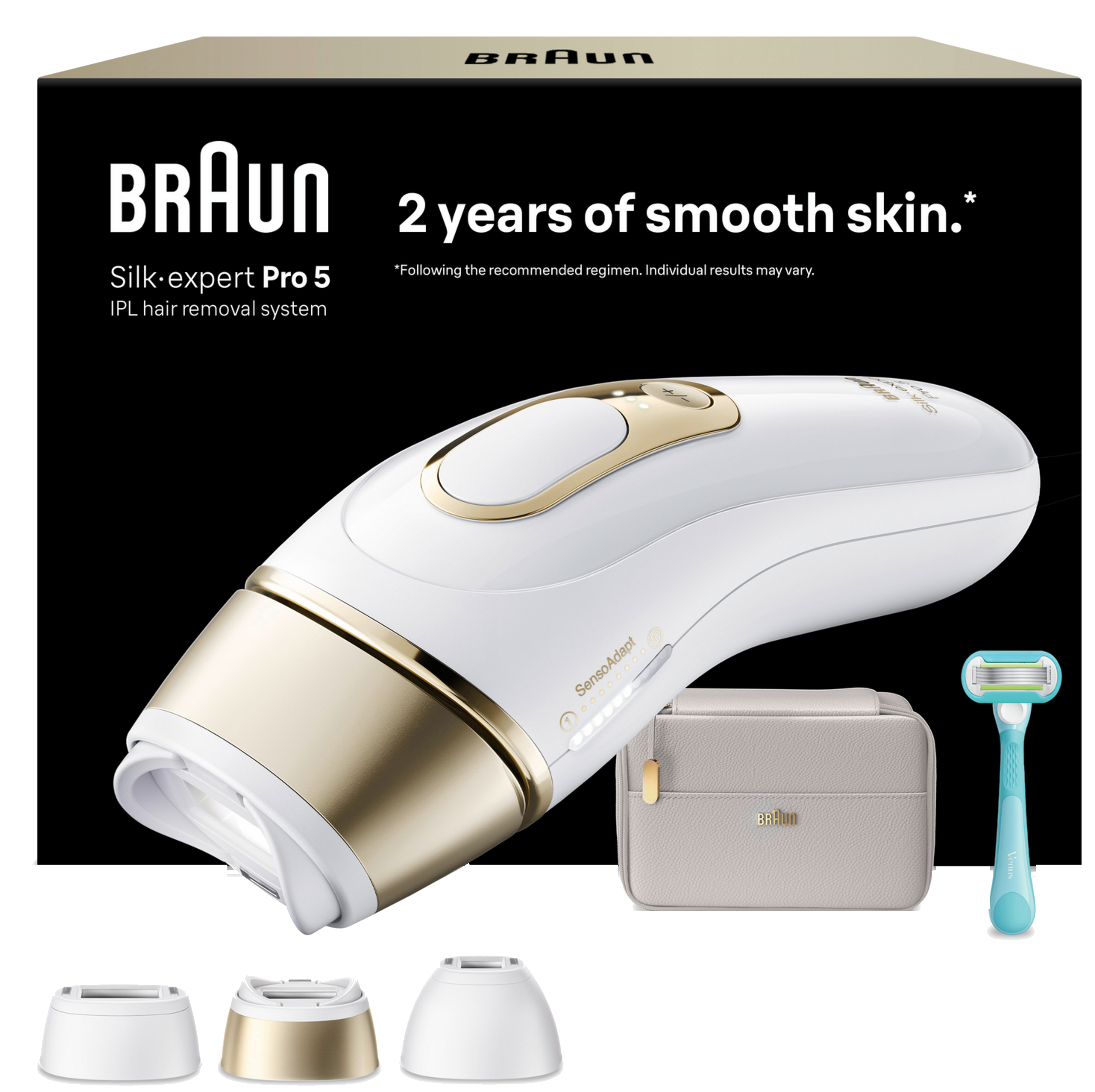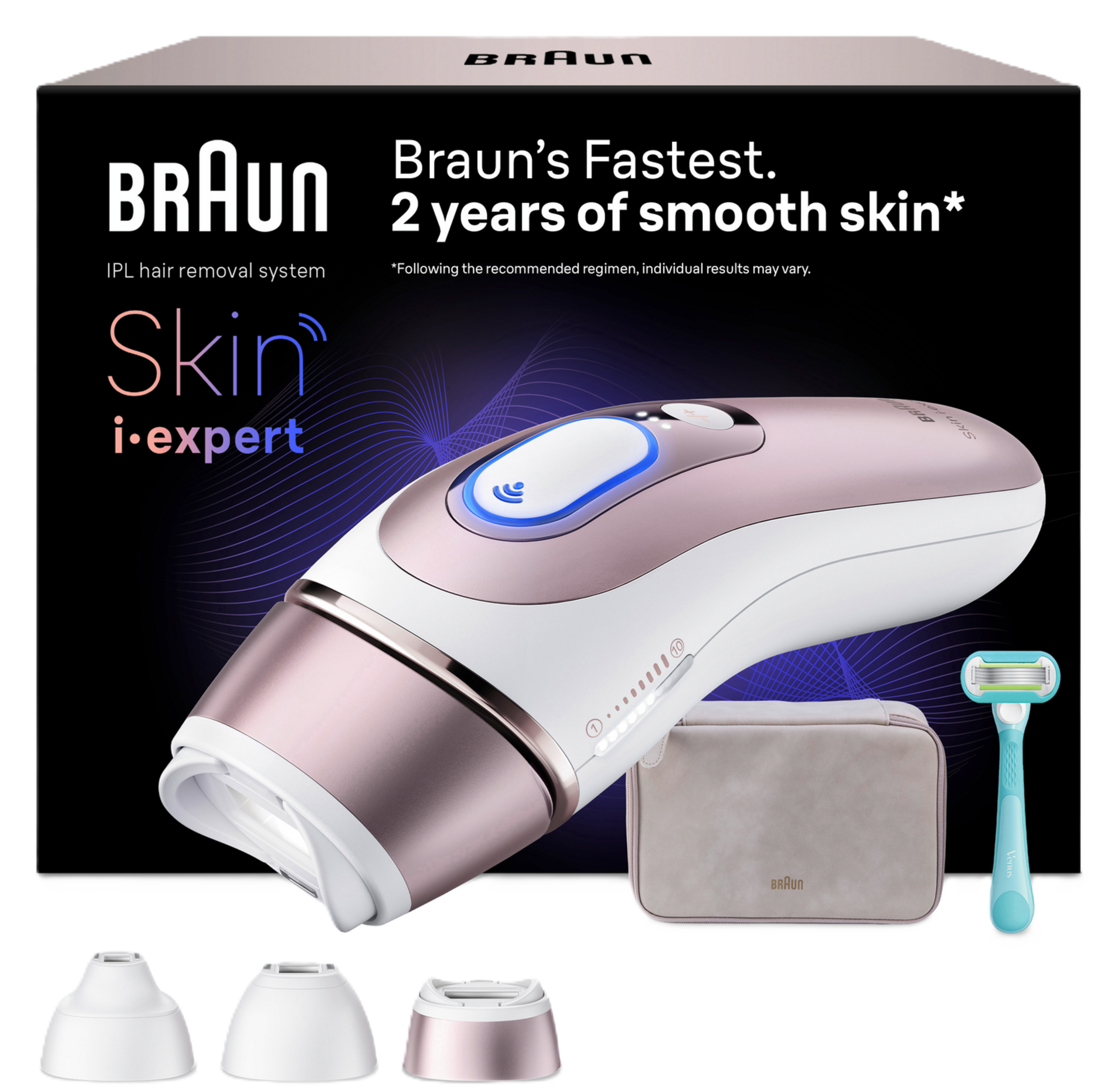 Braun IPL Haarentfernungsgerät mit Smart Flex Aufsatz, 2 Aufsätze, Tasche, Venus Rasierer