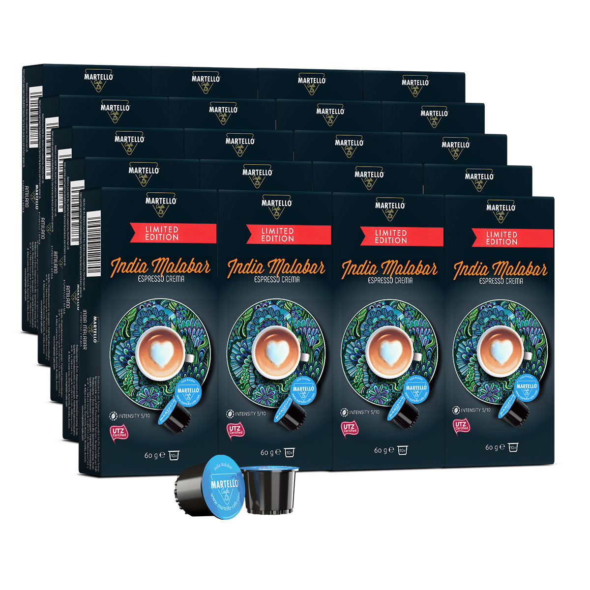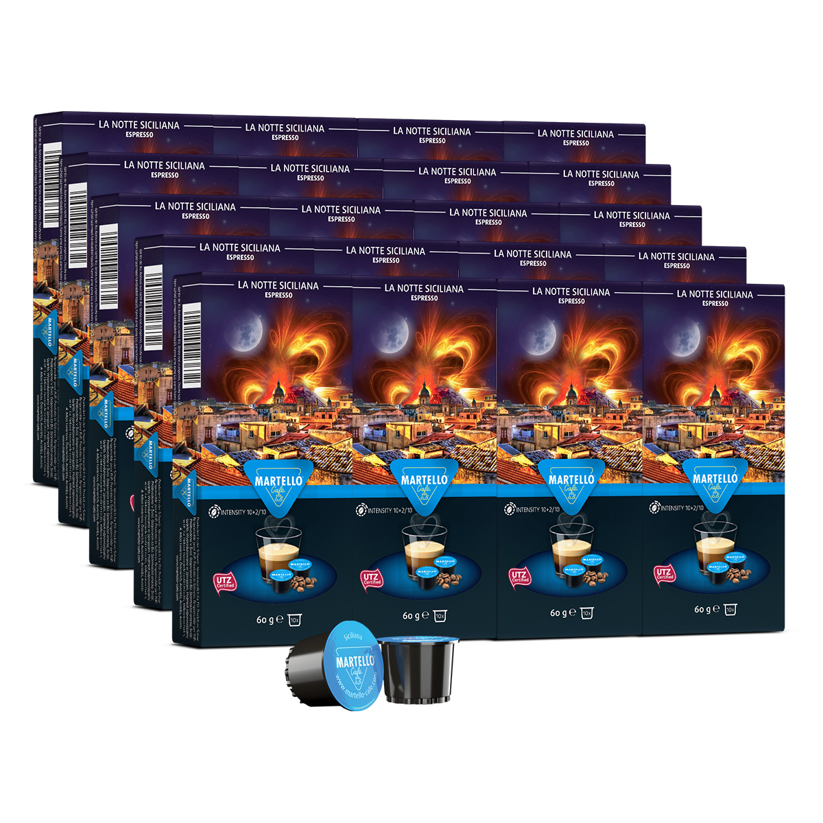 Schonend im Trommelröstverfahren veredelt: Martello Kapseln bewahren das Aroma handverlesener Premium-Bohnen für deinen Genussmoment per Knopfdruck.