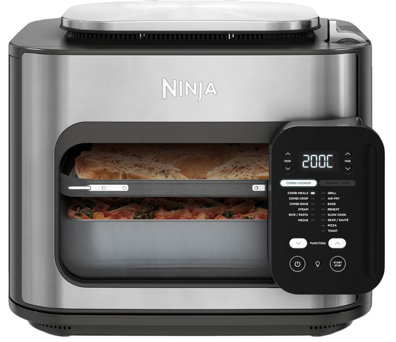 12 vielseitige Funktionen - Combi Meals, Combi Crisp, Combi Backen, Reis/Pasta, Anbraten/Sautieren, Dämpfen, Slow Cooking, Teiggare. Backen, Aufwärmen, Heißluft-Frittieren, Grillfunktion
