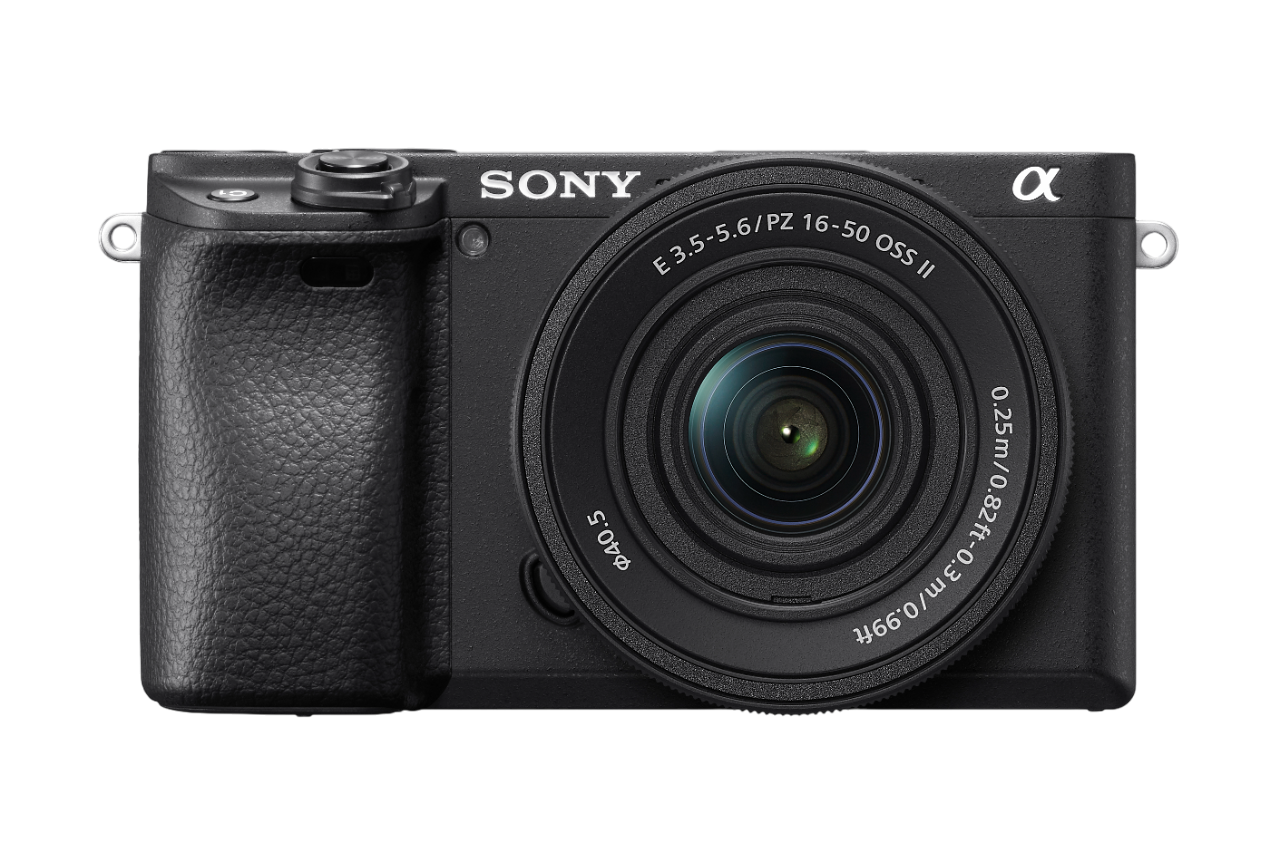Systemkamera, externes Batterieladegerät, Akku NP-FW50, E PZ 16-50mm OSS II, Objektivkappe, Schultergurt, Zubehörschuhkappe, Okularkappe